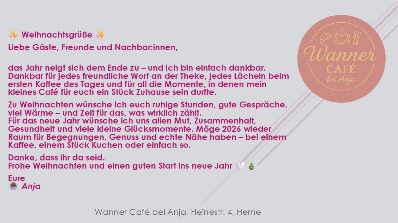 Willkommen im Wanner Café bei Anja – wo Genuss zu Hause ist. Bei uns erwartet Sie eine liebevoll zusammengestellte Auswahl an frisch zubereiteten Speisen und sorgfältig ausgewählten Getränken. Ob süß oder herzhaft, klassisch oder modern – wir servieren mit Leidenschaft und einem Gespür für Qualität.